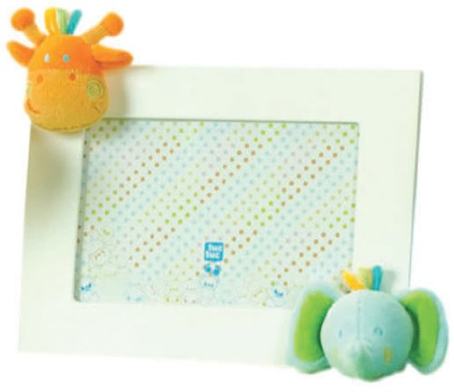 Tuc Tuc Nursery, Adorable and unique photo frame by Tuc Tuc. White wood frame 7"x 9" with glare resistant glass len, holds a 5" x 7" photo. Cute and bright plush giraffe and elephant little animals decorate its corners, making this frame one of a kind. Nice hardboard backing with easel for horizontal table top display. Bring originality and warmth to your baby's room. Other matching nursery decor accessories from this Circus Collection are also available.